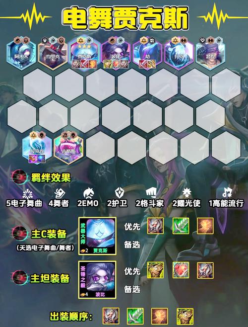 〖Five〗、金铲铲之战电子舞曲拉克丝 阵容介绍 羁绊组成:4电子舞曲 4耀光使者 4格斗 3迪斯科 电子舞曲羁绊可以说是S10赛季最有意思的羁绊之一了,而且这套阵容可以和迪斯科卡牌阵容互转,所以也是非常好用的阵容。拉克丝激光打后排确实厉害,但是单体能力比较差,所以后期需要卡牌和吉格斯来补伤害。