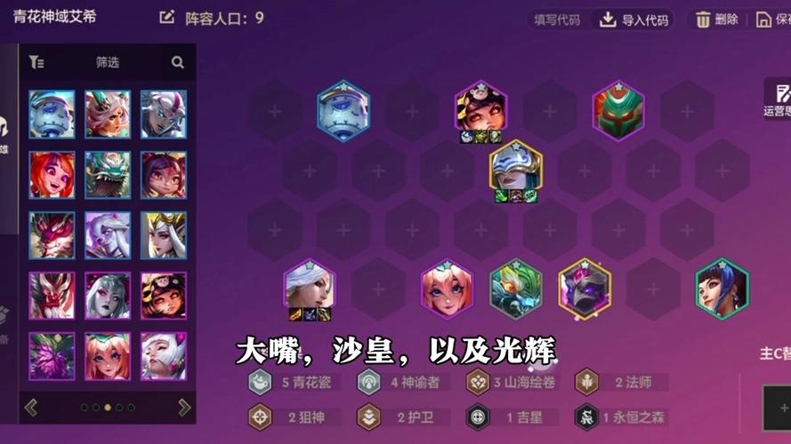 阵容一:学院永恩。学院永恩是当前主流的上分阵容,通常采用4学院或6学院搭配2挑战,视情况上白魔法与社会名流。该阵容看似需要较高费卡,但只要确保永恩能尽早升至二星,便能较为稳定地吃分。运营难度相对较低,战术简单直接。阵容二:圣盾大嘴。