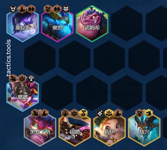装备选取方面,建议给诺姆希装备上法爆、无尽和青龙刀,这些装备能够大大提升诺姆希的输出能力。当然,备选装备还有大帽、科技枪和正义之手,根据实际情况来选取。运营策略上,这是一套需要运营的阵容。在前期,你要快速组成4强袭炮手羁绊,保证阵容的初步成型和战斗力。