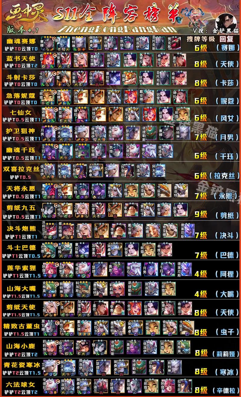 〖Five〗、阵容构成 千珏、锤石、永恩、瑟提、孙悟空、凯隐、纳尔、卡兹克。羁绊选取 4死神、3灵幻莲华、2夜幽、2天将、2永恒之森、2护卫。装备推荐 千珏装备:蓝霸服、珠光护手、巨人捕手或是、魔法帽;永恩装备:泰坦、吸血剑、羊刀;装备方面千珏必备蓝buff法爆。