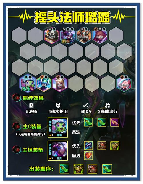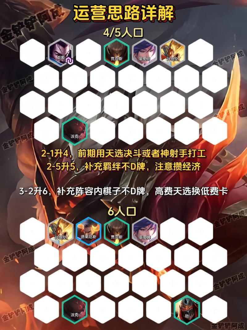 〖One〗、运营思路需注重前期,开局优先抢大剑与大棒,以便制作科技枪、传送门等关键装备。若无塔姆带福星,可选取其他过渡阵容如四挑战、三国神射、四斗士等。前期避免卖血,保持血量,优先收集天选福星牌。中期过渡至三福三国拼多多,确保卡特、安妮与金克丝的装备,等待天选福星的出现。