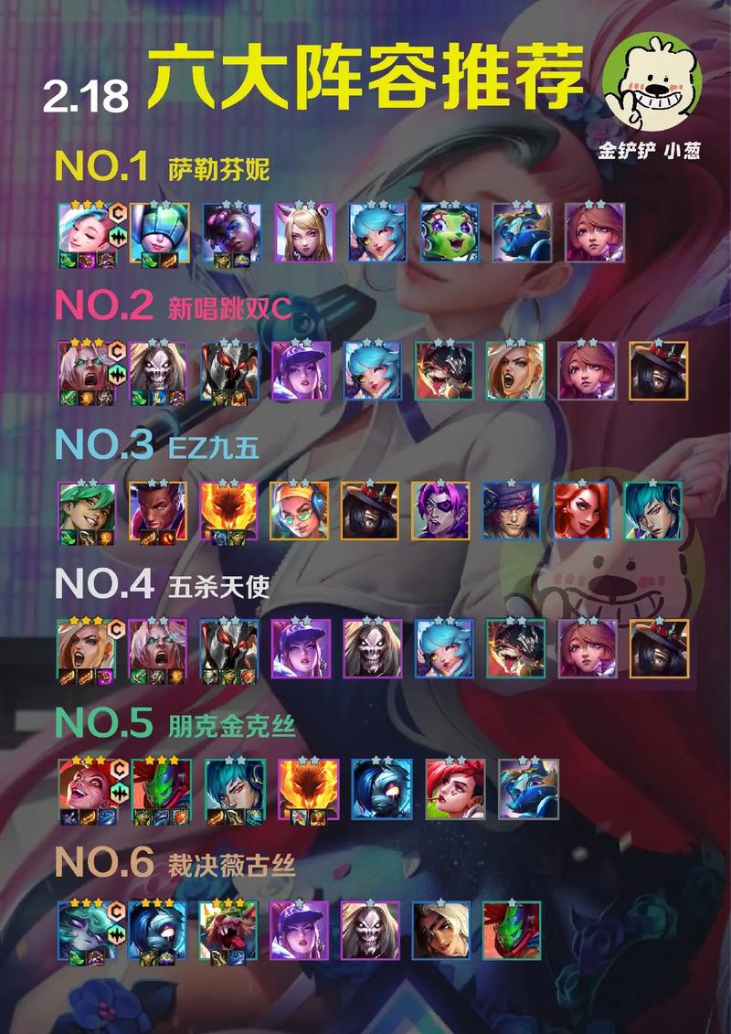 金铲铲之战S6赛季双城之战开启,今天为大家推荐一些强势阵容。学院永恩 学院永恩是当前主流的上分阵容,通常采用4学院或6学院搭配2挑战者,视情况上白魔法师与社会名流。虽然需要的高费卡较多,但只要永恩能尽早二星,吃分就较为稳定。运营难度不高,玩法简单直接。