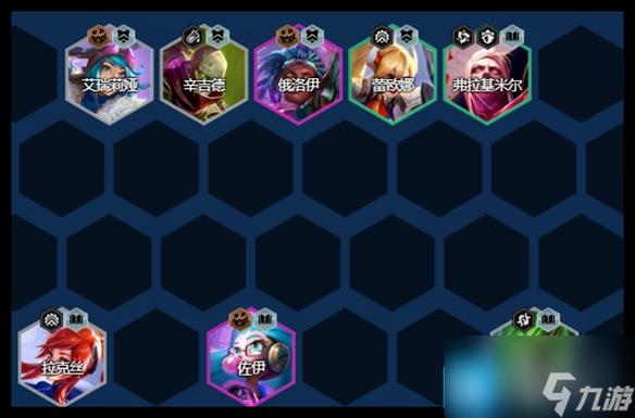 赌狗艾希阵容包括:艾希、布里茨、雷克顿、卡蜜尔、亚索、伊泽瑞尔、薇恩、卡莎,羁绊为4情报特工、3源计划:激光特工、2AI程序、2决斗、2斗士。黑客劫 黑客劫阵容有亚索、艾克、赫卡里姆、瑟庄妮、蔚、劫、薇恩、尼菈、佐伊,羁绊包括4决斗大师、3源计划、2斗士、2秘术卫士、2黑客、2淘气包。