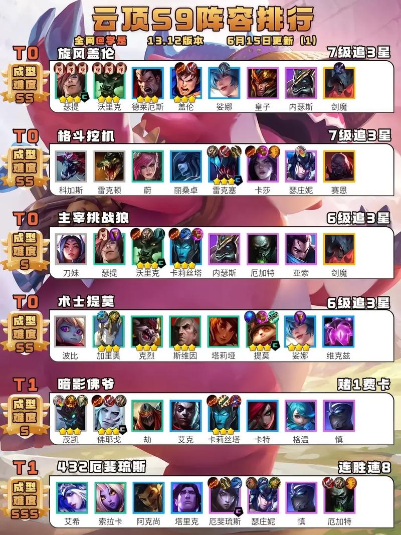 选取上分阵容:一定要选取当前版本强势的羁绊组合。盲目与版本抗衡只会增加失败几率。为了稳妥起见,选取当前版本强势的阵容来提升胜率。装备分配策略:在装备选取上,要明确装备思路,优先给关键英雄。