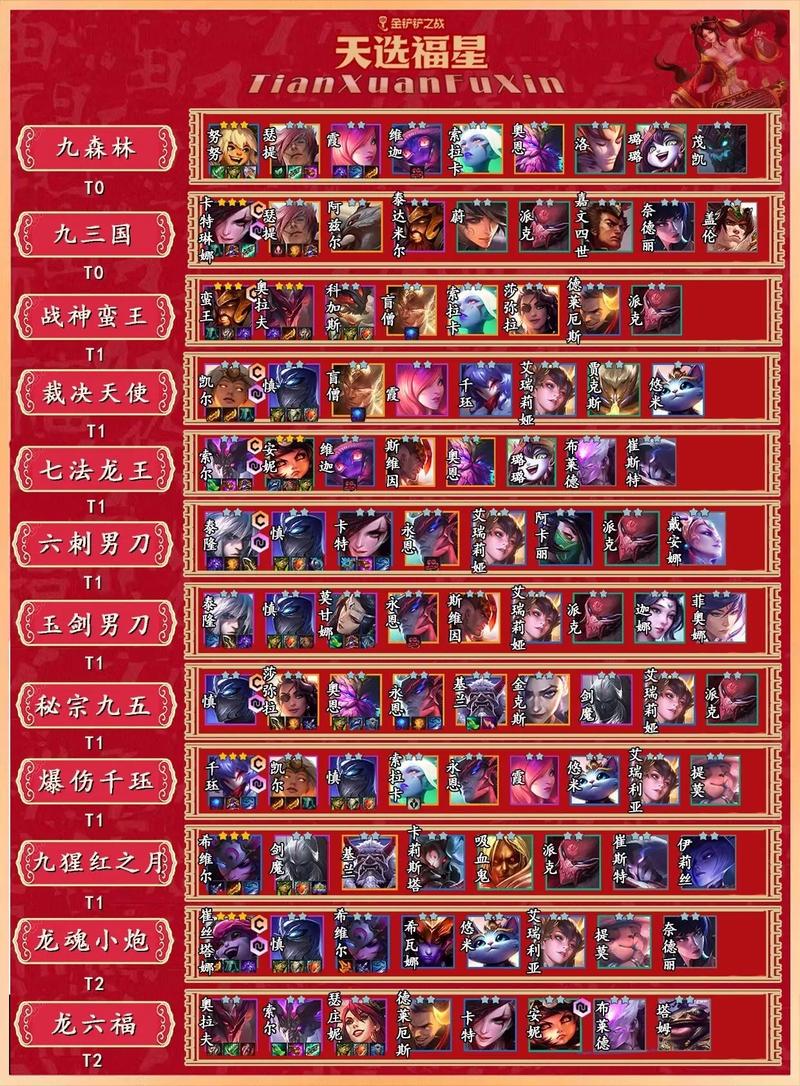 〖Two〗、金铲铲之战s8最强阵容推荐:驯龙赛芬:这可是当前赛季末的王者阵容哦,胜率超高,出场次数也多,完全不用考虑法师体系追三星,是王者们最爱的上分阵容。熬兴九五:虽然赛芬很强,但熬兴九五的天花板地位还是无法撼动的。只要阵容大成,两星的熬兴九五还是非常容易吃鸡的。