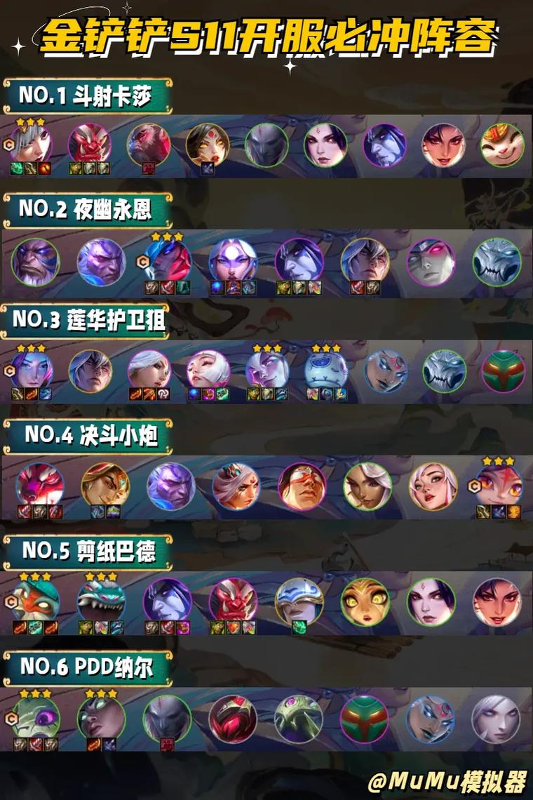 金铲铲之战s8最强阵容推荐:驯龙赛芬:这可是当前赛季末的王者阵容哦,胜率超高,出场次数也多,完全不用考虑法师体系追三星,是王者们最爱的上分阵容。熬兴九五:虽然赛芬很强,但熬兴九五的天花板地位还是无法撼动的。只要阵容大成,两星的熬兴九五还是非常容易吃鸡的。