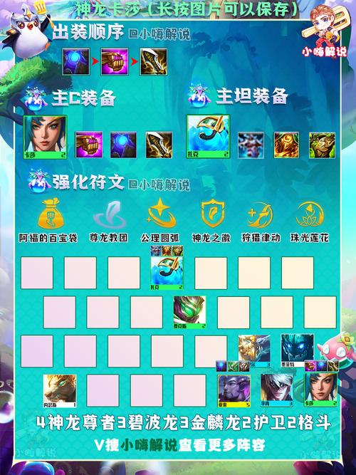 金铲铲之战四龙九五阵容攻略配置作为版本最贵最需要运营的究极大后期阵容,这套四龙九五的上限够高,大成型基本是必吃。核心羁绊为4龙神,在海克斯对或者能够有容错上9的局建议选取。