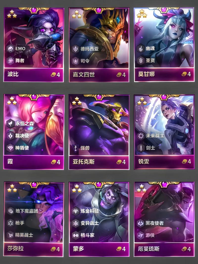 〖Four〗、金铲铲之战上分阵容推荐——驯龙赛芬组合:核心棋子:黑默丁格、崔丝塔娜、璐璐、塞拉斯、赛芬、佐伊、巴德和索拉卡。羁绊搭配:3驯龙大师、1龙神、1窃法巧手、1唤星者、4幽影龙、2格斗家和2魔导师/3法师,形成强大的协同效应。
