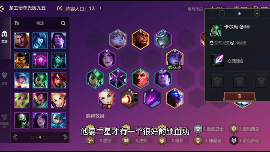 适合新手的上分阵容 我们将介绍几种适合新手的基础阵容,这些阵容容易上手,且在当前版本的游戏环境中表现良好。阵容1:战士冠军阵容 核心英雄:盖伦、德莱厄斯、赛恩 推荐羁绊:战士、护卫 这个阵容以战士为主力,搭配几位护卫英雄增强防御。战士英雄通常拥有较高的生存能力和伤害输出,非常适合新手操作。