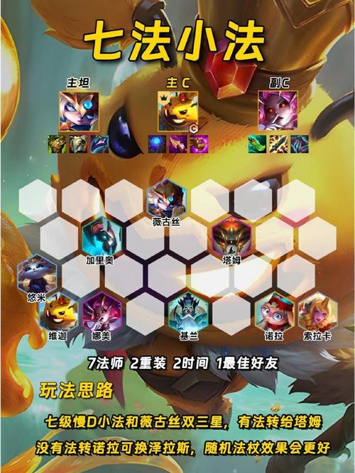 〖Two〗、金铲铲之战福星最强阵容推荐包括塔姆、卡特、蔚、诺手、猪妹、安妮等英雄的组合。这个阵容结合了前排坦度和后排刺客,能够在战斗中灵活应对各种情况。此外,还有其他几个值得推荐的阵容,如福星九五阵容,由德莱文、瑟庄妮、瑟提等英雄组成,以五费卡为核心,拥有强大的单体输出和团控能力。