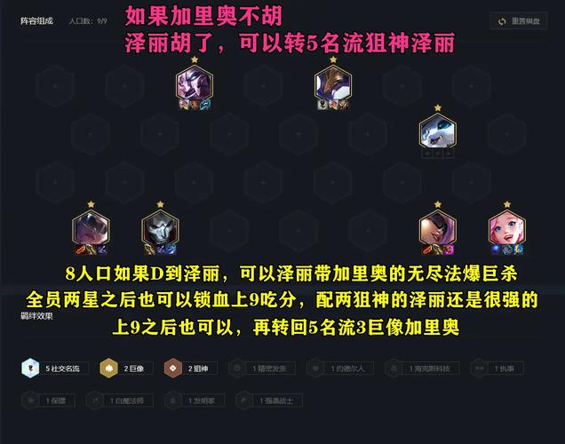 〖Four〗、金铲铲之战S5版本策略是眼泪开,掌握关键阵容和海克斯是上分的关键。白魔塞纳阵容:这是一个以塞纳为核心的阵容,推荐连胜开局,装备上羊刀、无尽和巨杀/轻语是最佳选取。阵容组成为4白魔+3名流+3约+2黑魔,关键点是确保塞纳等核心英雄的上场,同时海克斯强化中的3费之力能显著提高胜率。