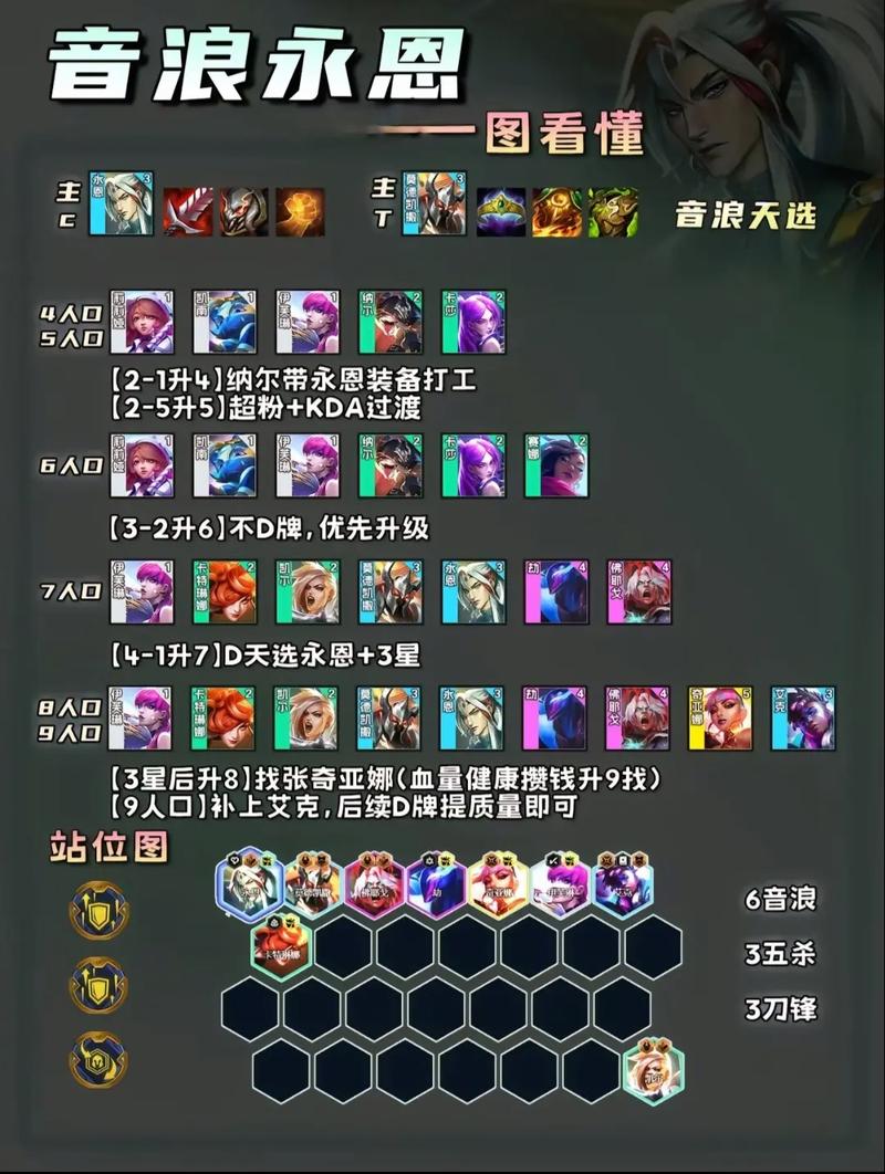 〖Four〗、金铲铲之战S6赛季双城之战开启,今天为大家推荐一些强势阵容。学院永恩 学院永恩是当前主流的上分阵容,通常采用4学院或6学院搭配2挑战者,视情况上白魔法师与社会名流。虽然需要的高费卡较多,但只要永恩能尽早二星,吃分就较为稳定。运营难度不高,玩法简单直接。