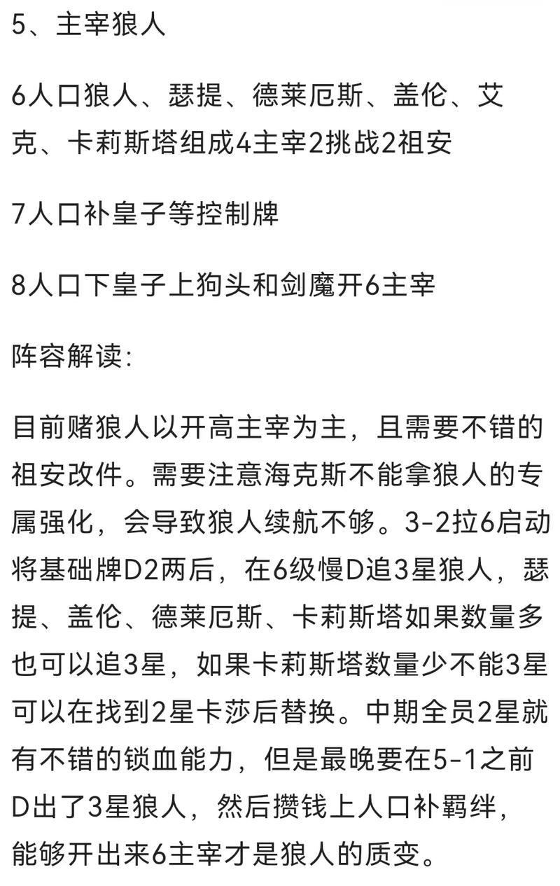 〖Four〗、第一类是T1级别阵容,其中术士提莫与裁决潜行劫尤为突出,凭借其版本强势与综合胜率,成为最热门的选取。而T5级别的阵容包括主宰盖伦、斗士挖掘机、主宰狼人与神谕者卡尔玛,这些阵容在运气好的情况下能获得显著优势,但也有明显的弱点。