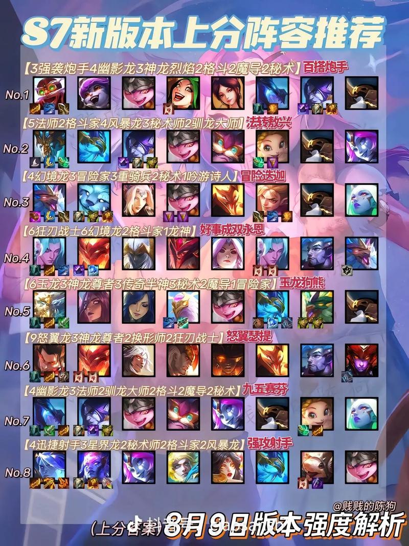 阵容构成 在最新的游戏补丁中,以下是被广泛认为是最强的几种阵容 复仇焰灵阵容 核心英雄:烬 辅助英雄:提伯斯、布兰德、莫甘娜等 特点:这个阵容依靠烬的高输出以及其他英雄的控制和增益效果,使得阵容在后期有很强的持续战斗能力。