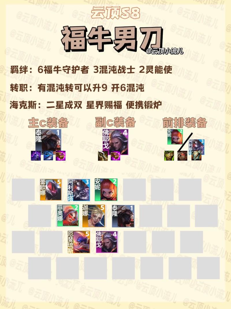 选取上分阵容:一定要选取当前版本强势的羁绊组合。盲目与版本抗衡只会增加失败几率。为了稳妥起见,选取当前版本强势的阵容来提升胜率。装备分配策略:在装备选取上,要明确装备思路,优先给关键英雄。