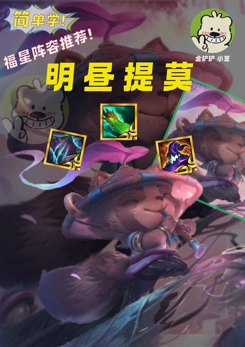 〖Four〗、提莫的装备推荐包括蓝buff/青龙刀、法爆和科技枪。这些装备能保证提莫的技能连贯性和输出伤害。 战术运用 - 前期过渡:使用3约德尔人+3德玛西亚+2术士的组合过渡。由于前期有光明装备的支持,该阵容强度不俗。避免主动升级人口,而是逐步搜寻约德尔人,5或6人口时可适当搜寻以提升阵容质量。