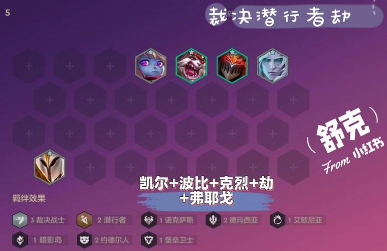 〖Three〗、阵容搭配:核心英雄:提莫、加里奥、斯维因、克烈,这些英雄能激活重要的羁绊,提升整体战斗力。辅助英雄:可以选取娑娜提供治疗与法术加强,波比和嘉文四世增加前排坦度和控制能力。后期补强:根据战场情况,可以选取拉克丝、阿兹尔等进行补强,提升阵容的多样性和适应性。