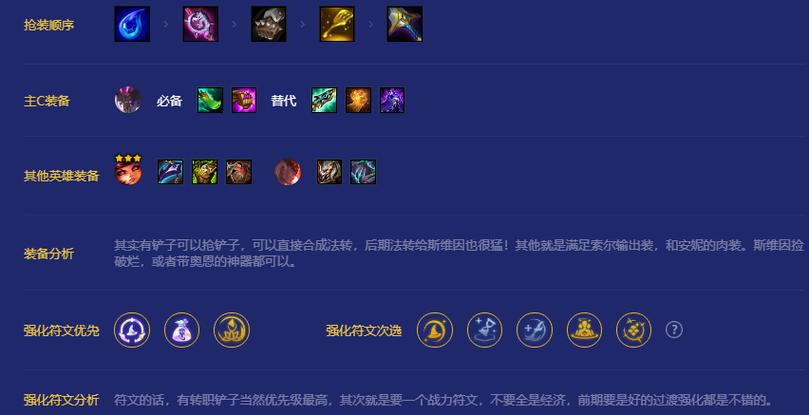 金铲铲之战上分阵容推荐,我们关注的是推土车赛芬,这阵容比驯龙法更稳定。核心输出赛芬装备优先:火炮、科技枪、泰坦的决心。开局过渡建议使用3玉龙、2护卫、快射手,这些低费卡容易获取,如塔里克、锤石、卡尔玛、艾希、伊泽瑞尔。