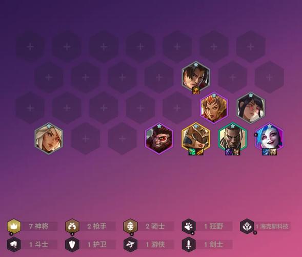 剑枪阵容:剑枪是云顶之弈S1的老套路,曾是许多玩家的首选。该阵容后期强度极高,成型后基本能稳居前三,若对手实力较弱,夺魁几率极大。『1』阵容羁绊:3豪侠、6枪手、1忍者、2海克斯科技、3剑士。『2』阵容搭配:暮光之眼、青钢影、无畏重炮、地火霸主、驱邪圣枪、双枪女帝、暴走萝莉、麦田炮手。