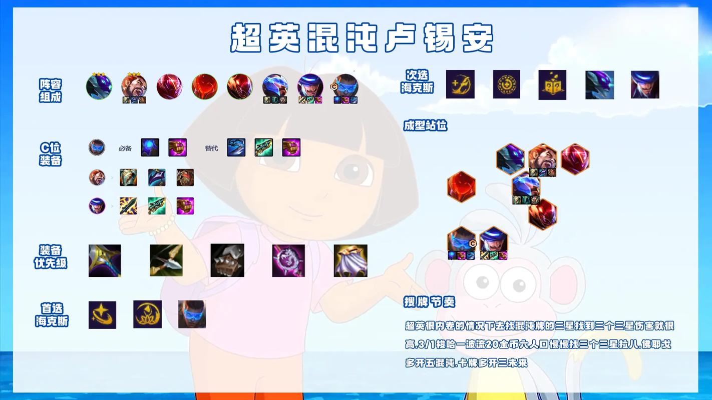〖Five〗、对于英雄强化的解析,前两次海克斯推荐围绕阵容核心英雄,如希维尔、加里奥等,而第三次海克斯出怪兽类强化时,优先考虑四费和五费怪兽,如龙龟、大眼等,根据情况灵活调整,避免捡取法球。