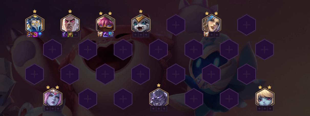 〖Two〗、在游戏初期,优先抢夺反曲弓,以便后续转职花仙子。 利用3次元2换形3魔战2堡垒的羁绊进行过渡。 在42回合积极拉取8人口,寻找2星滑板鞋和2星洛。 后期升9人口,补齐羁绊,完善阵容。