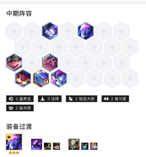 〖One〗、大棒:提高魔法伤害,对星界龙法师尤其有用。战术运营 初期布局:在游戏早期,推荐优先上场星界龙战士与星界龙辅助,保证阵容的稳定性。并逐步搜集星界龙法师和猎人单元,准备过渡到中期。中期调整:在中盘,玩家应该开始集中力量培养星界龙法师,同时尝试寻找适合的装备加强输出能力。