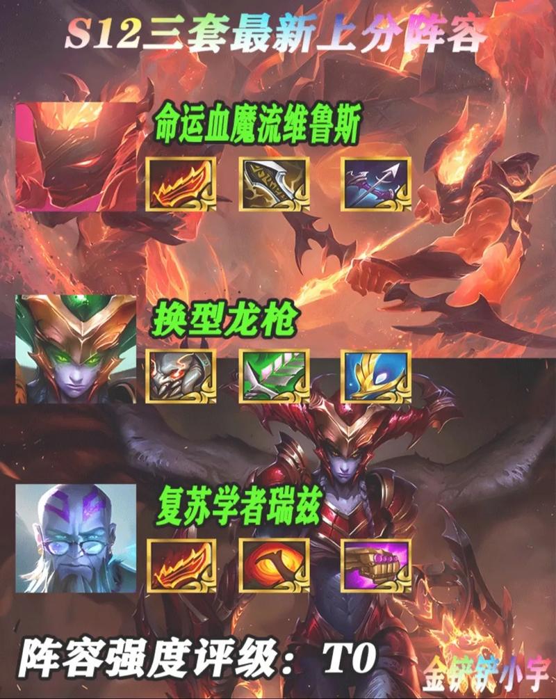 针对这个版本,推荐的上分阵容是黎明复生刺客阵容。这套阵容不仅伤害高,而且具有较高的容错率。【阵容搭配】包括梦魇(追3)、皎月、狗熊、翠神、派克、佛耶戈、稻草人、璐璐等棋子。【装备选取】魔腾由于伤害未受削弱,因此需要找到替代黑棋子的装备以实现锁血。