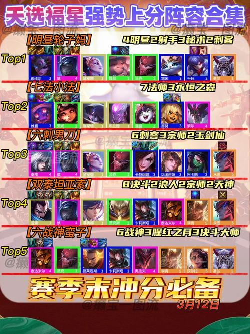 福星天选阵容:核心英雄如“天雷劫”或“疾风剑豪”亚索,搭配具有高爆发能力。辅助英雄如“凛冬之怒”瑟提和“暴走萝莉”金克丝,提供控制或治疗能力。激活福星羁绊以获得额外金币收益,快速升级和购买装备。后排刺客前排宗师阵容:后排五个刺客,前排三个宗师。泰隆必备正义之手,其他装备可以灵活搭配。