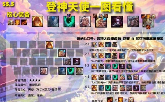 金铲铲之战英雄黎明最强阵容攻略:天使阵容:天使绝对是yyds,强度高得没话说,是上分的不二之选。游侠阵容:德莱文、卢锡安、阿克尚组成的游侠阵容,装备需求一致,灵活性高。