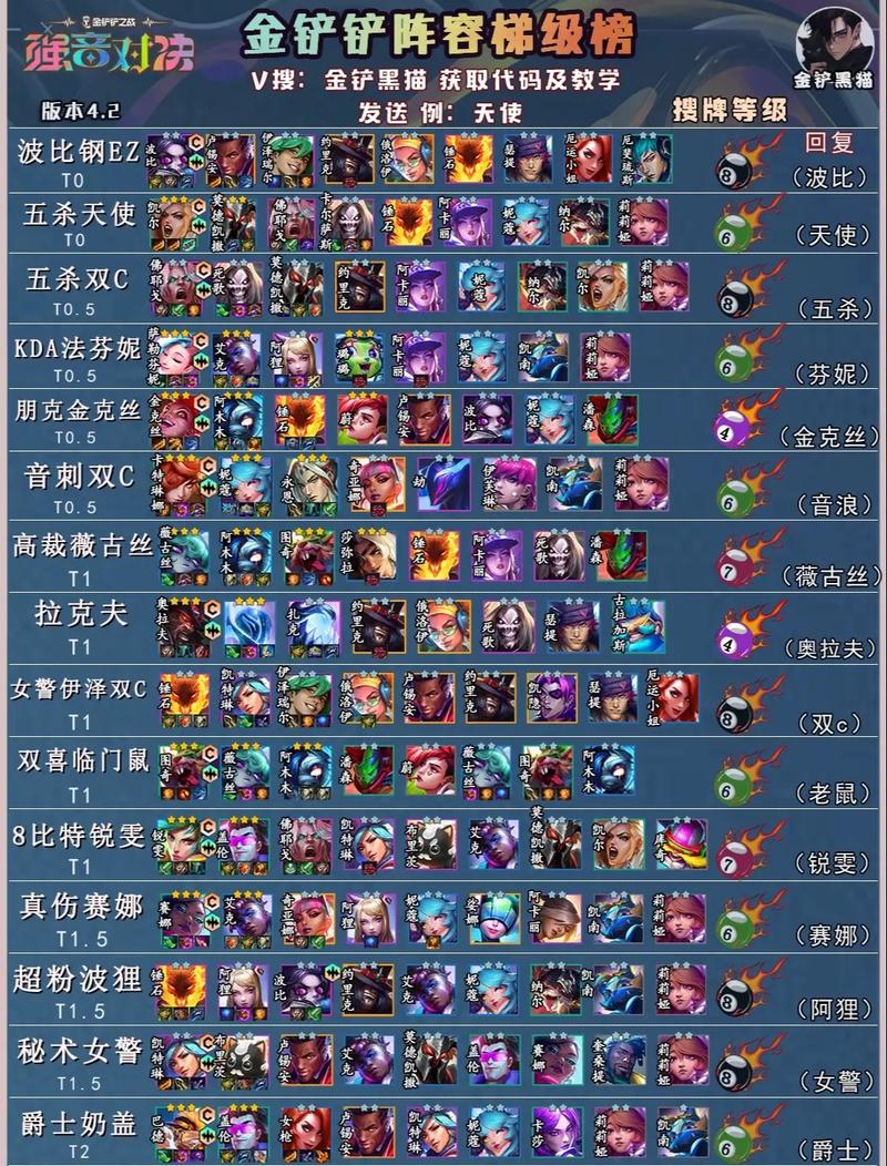 金铲铲之战S10五杀天使阵容推荐阵容介绍首先说明,这套阵容强度只能说还行,主要赢在没有同行可以烂分,强度除了三星天使、三星铁男外。上限主要在同样为五杀的死歌和掘墓,有五杀转职的话这套又是更上一层的强度,所以更加推荐大家拿到铲子可以考虑玩。