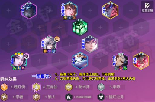 金铲铲之战S5版本策略是眼泪开,掌握关键阵容和海克斯是上分的关键。白魔塞纳阵容:这是一个以塞纳为核心的阵容,推荐连胜开局,装备上羊刀、无尽和巨杀/轻语是最佳选取。阵容组成为4白魔+3名流+3约+2黑魔,关键点是确保塞纳等核心英雄的上场,同时海克斯强化中的3费之力能显著提高胜率。
