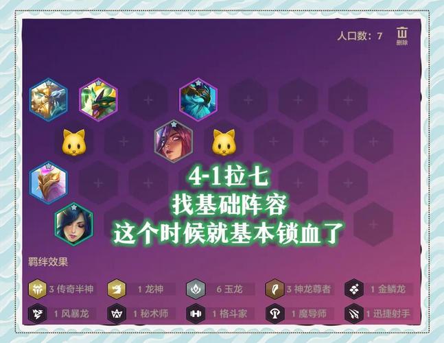 〖One〗、今天为大家带来《金铲铲之战》s8上分阵容七法龙魂龙王玩法思路分享,阵容组成为:奥瑞利安索尔、安妮、斯维因、奥恩、维迦、璐璐、布兰德、崔斯特,不要让索尔死的快就是终极目标。基本大部分阵容都能碰碰。最主要还是看质量。