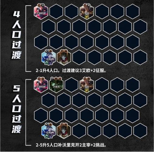 〖Four〗、人口阵容推荐:主C老鼠搭配吸血鬼、蛇女、努努、蒙多、蜘蛛、盖伦、女警。这个组合可以形成3实验品、3黑玫、2格斗、2狙神、2监察、1外交官的羁绊搭配。9人口大成阵容:在8人口阵容的基础上,下掉吸血鬼和蛇女,上蔚、杰斯、莫德凯撒。这样可以让阵容更加强大,适应更多的战斗场景。