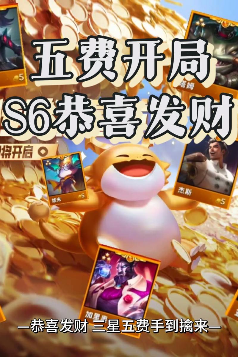 〖Five〗、恭喜发财天选开局选秀不再是1费棋子,而是4费或5费棋子。通常一局游戏会是4费棋子,下一局则为5费。金币与装备获取更加容易。在1-2-3-4-5-6-5阶段,游戏会提供金兔子,打开后可以得到金币、散件装备、成品装备、装备拆卸器、纹章之书、自然之力等。