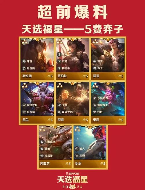 〖One〗、合成三星五费卡有两条路径,分别是福星连败和猩红连胜。为了实现这两种策略,你需要一个优质的阵容底子。首先,需要准备8张五费卡加上一个“慎”。装备方面,前期保留装备以合成一些功能性装备确保连胜,比较好合成一个水银复活甲。永恩作为主要C位,具体出装可以借鉴下图。