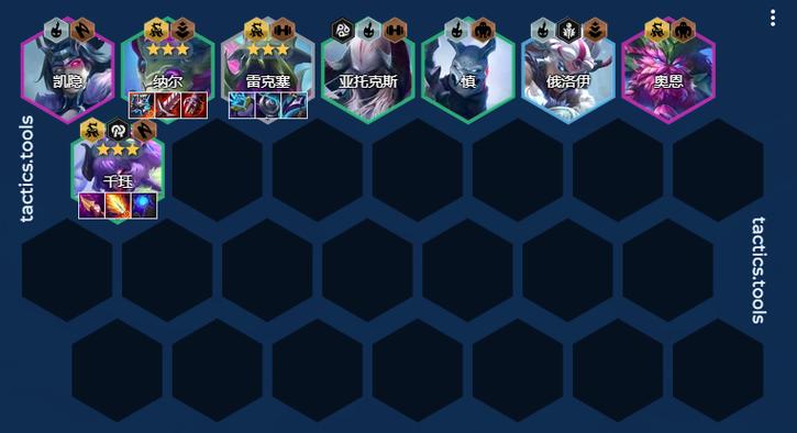 〖One〗、【运营思路】【前期运营】使用三哨兵三神盾进行过渡,利用奥拉夫带装备保持血量,或者采取空城策略,只保留螳螂和刺客牌,尽快提升经济并卖血拿铲子。当血量降至40附近时,在3-4或4-1阶段开始搜索,搜出三复生四刺客后锁血并攒钱,然后在5-1阶段搜出三星梦魇。