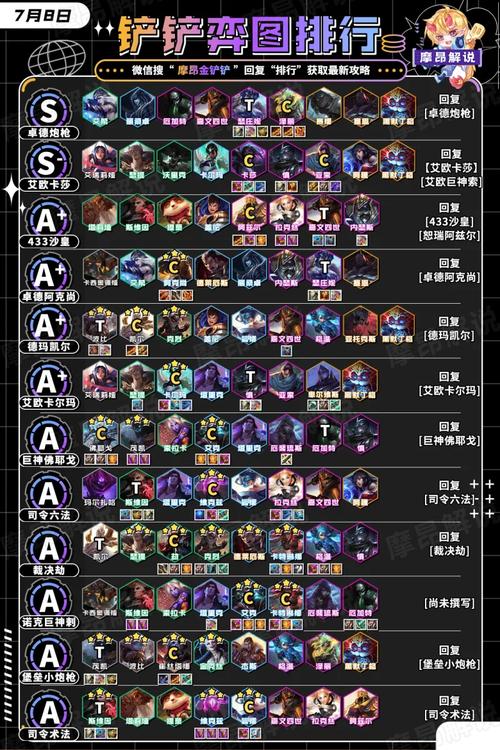 金铲铲之战s8最强阵容推荐:驯龙赛芬:这可是当前赛季末的王者阵容哦,胜率超高,出场次数也多,完全不用考虑法师体系追三星,是王者们最爱的上分阵容。熬兴九五:虽然赛芬很强,但熬兴九五的天花板地位还是无法撼动的。只要阵容大成,两星的熬兴九五还是非常容易吃鸡的。