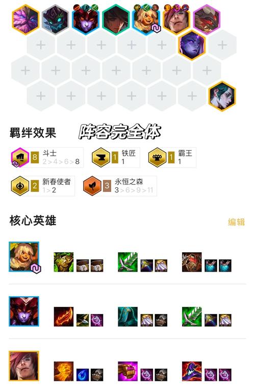 金铲铲之战天选福星神盾霞阵容搭配攻略 阵容组成 神盾霞阵容主要由霞、锐雯、凯南、贾克斯、沙皇、慎、盲僧等英雄组成,这些英雄能够触发神盾使、裁决使等羁绊,从而提升阵容的整体作战能力。霞作为核心输出,需要重点培养。