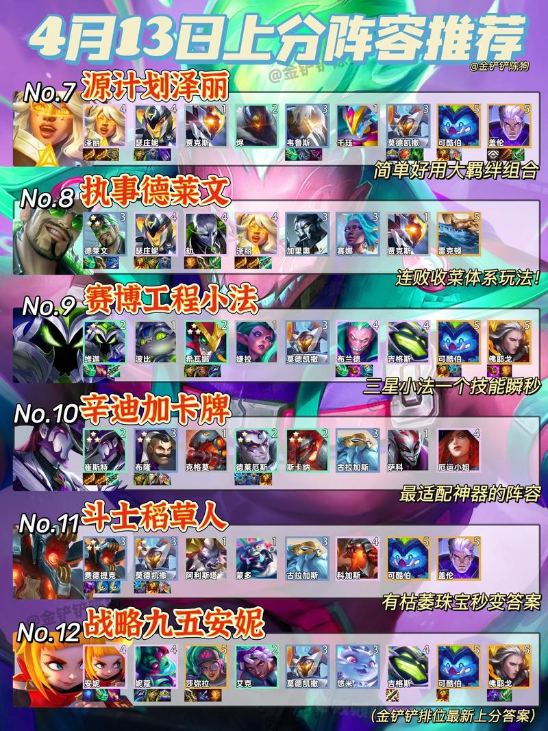S5强势阵容:黑夜亚索 核心棋子:亚索(主C)、盲僧(副C)、皎月(控制)。运营思路:6人口赌3星亚索,搭配4黑夜使者+2征服者,后期补奥拉夫或佛耶戈增强输出。装备分配:亚索带火炮、珠光护手、正义之手,盲僧拿救赎、棘刺背心。赌狗阵容:狂野龙 核心棋子:龙女(主C)、纳尔(控制)、豹女(副C)。