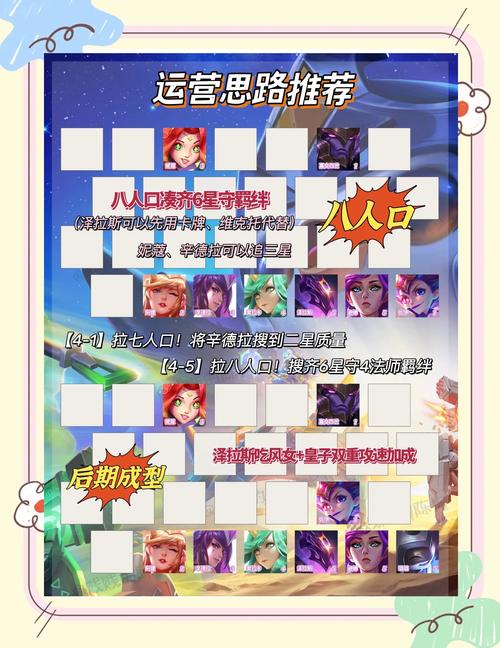 在中期,当阵容凑齐5心之钢时,可以选取进行一波连败,以弥补经济和装备上的不足。连败期间,应注意控制血量,避免过早被淘汰。同时,继续寻找并合成适合其他英雄的装备,为后期阵容的成型做准备。后期成型:当阵容达到8人口时,应尽快开出7心之钢。此时,无论连胜还是连败,都能获得丰富的奖励。