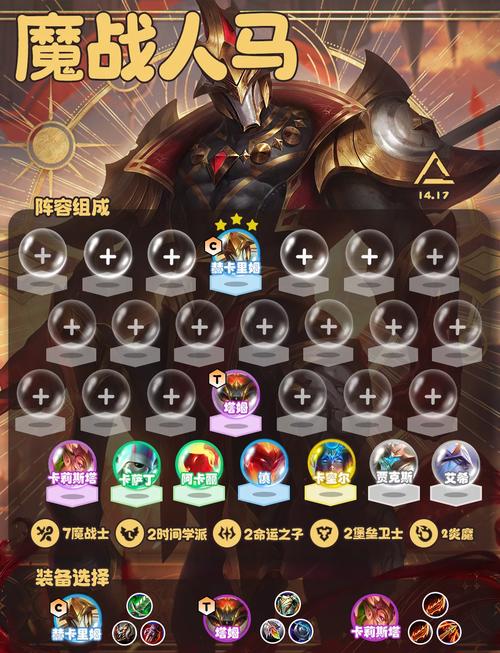 〖Three〗、在金铲铲之战中,塔姆作为主要输出角色,其出装策略至关重要。首先,水银和蓝buff是塔姆必备的装备,这两件装备能有效防止被敌人控制,从而避免被秒杀。其次,第三件装备的选取需要根据具体战局灵活决定,从科技枪、正义之手、大帽子中挑选一件,这样既能提高塔姆的容错率,也能最大化其输出能力。