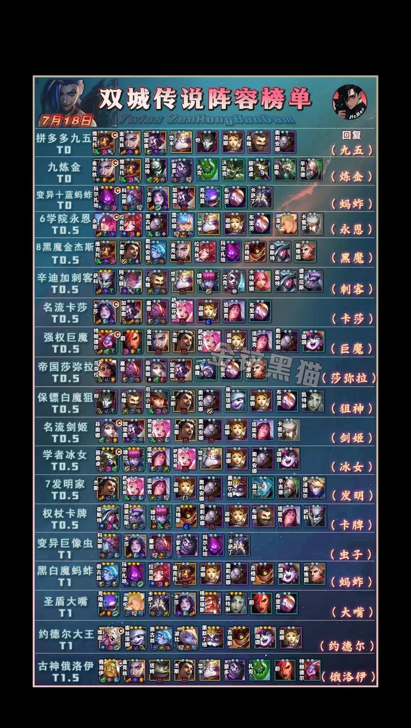 暗影刺客阵容 以暗影和刺客的组合,这个阵容强调潜行和快速切入,秒杀对方关键单位。核心英雄 艾克整个刺客阵容的核心,艾克的秒表技能可以在关键时刻扭转战局。凯隐拥有强大穿透能力的凯隐,能在战斗一开始就给对手带去巨大压力。莫甘娜作为暗影的一员,莫甘娜的大招能在团战中发挥巨大作用。