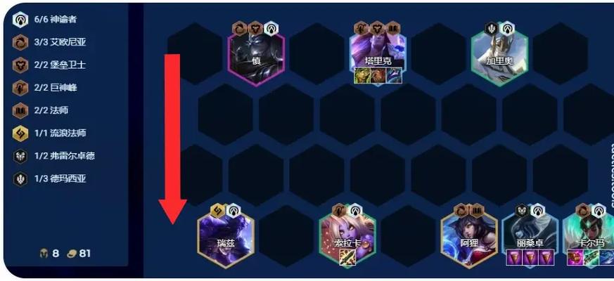 具体阵容组成:泰隆、魔腾、斯维因、布兰德、泽丽、蕾欧娜、辛德拉、卡兹克,54刺客2黑魔2海克斯。如果拥有刺客转职,可开启六刺阵容;如执事转职,则可构建七执事。