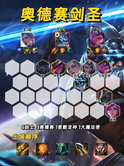 〖One〗、前期可使用劫、天使、佛耶戈、烬、刀妹作为过渡棋子,或选取连败策略,仅保留体系牌,养高经济,在3-2级启动,转向连胜。劫需泰坦无尽作为核心装备,第三件吸血装提升容错率和爆发力。可选取1至2个棋子辅助启动。卡特则装备法爆正义离子,如有裁决转职,可更换离子装备。