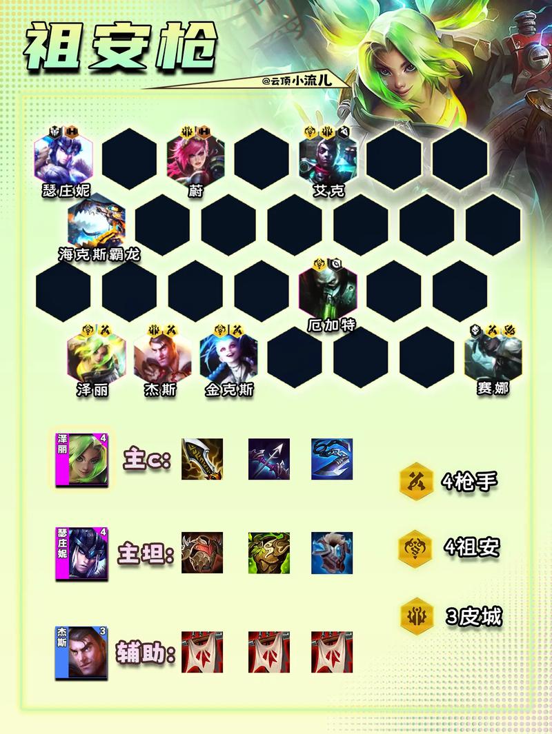 〖One〗、今天为大家推荐几个金铲铲之战黎明不错的上分阵容搭配推荐。重骑破败女枪 阵容需要角色:锤石,泰坦,猪妹,人马,女枪,铁骑,德莱文,努努,其中主C是女枪,副C是人马。女枪和人马是关键角色,装备三件套满上,星级达到三星,基本稳拿第一。女枪搭配绿刀,鬼刀,珠光护手;人马搭配龙爪,救赎,反甲。