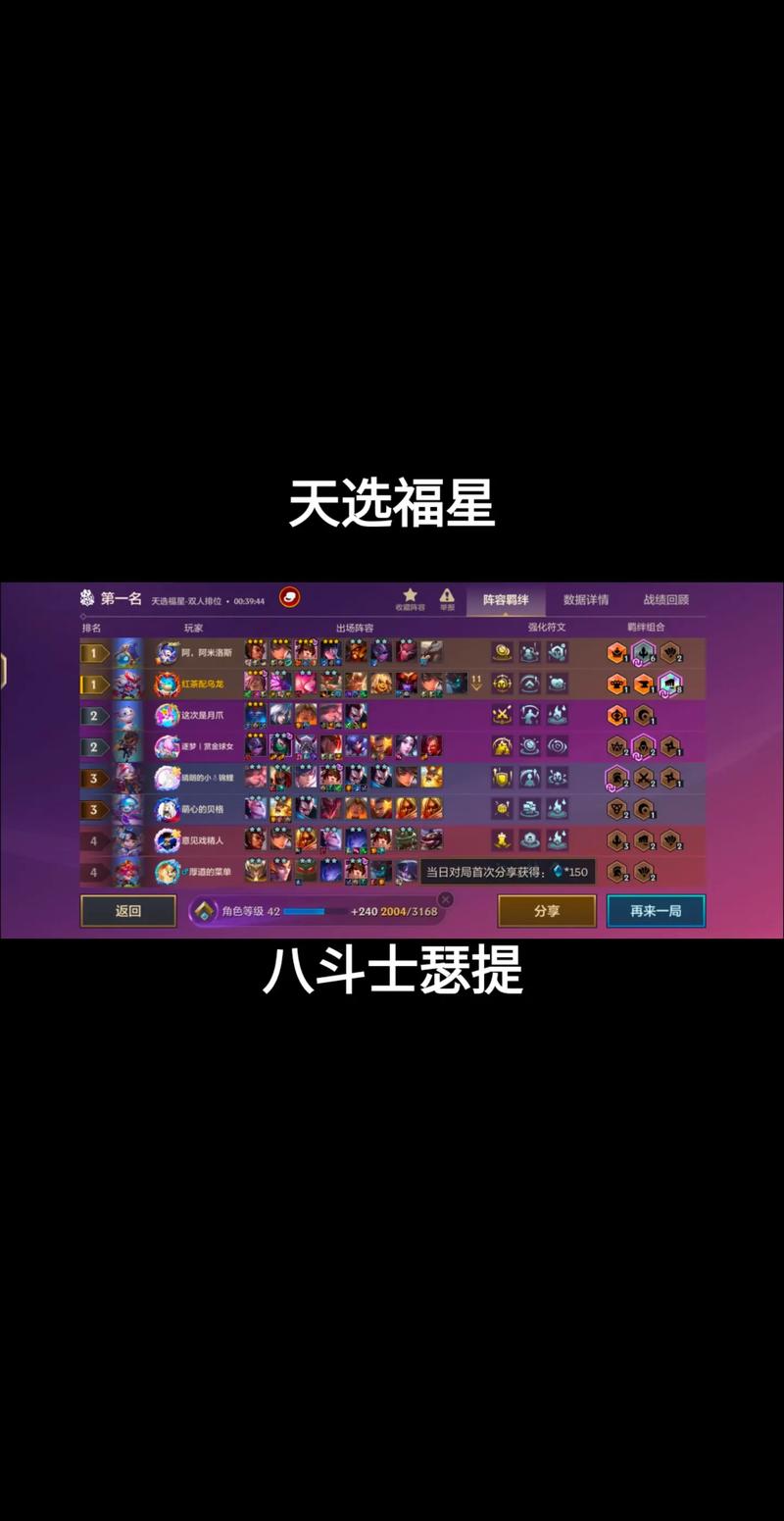〖Three〗、福星版本八斗士阵容运营玩法思路阵容搭配阵容组成:茂凯、塔姆、塞拉斯、瑟提、努努、沃里克、蔚、沃里克阵容羁绊:8斗士3永恒之森2猎人1霸王阵容变阵:8斗士羁绊是不变的,前期可以用斗士天选,也可以直接四斗士,后期围绕8斗士搭配羁绊就行,个人推荐沃里克可以凑双羁绊,9人口上盲僧即可。