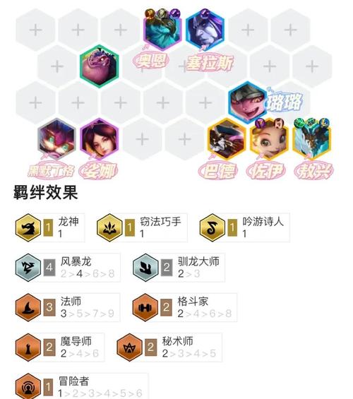 〖Five〗、《金铲铲之战》驯龙敖兴九五阵容玩法及详情如下:阵容介绍 驯龙敖兴九五阵容是当前游戏环境中强度依旧为首的阵容,只要阵容成型,几乎可以确定进入前二。该阵容以敖兴为核心,搭配驯龙大师、法师等羁绊,形成强大的输出和控制能力。阵容站位 常规站位:主坦塞拉斯置于中置位置,以吸引敌方火力。