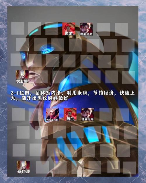 〖Three〗、璐璐:放置在阵容的一侧,主要用于防范刺客的突进,保护后排输出。赛芬:作为核心输出,需要调整其站位角度,确保能够冲撞到对手的后排关键输出位置。运营节奏:开局抢腰带:腰带可以合成传送门、日炎斗篷等前期强势装备,有助于打连胜。2-1拉4人口:根据现有英雄,选取最优羁绊组合。