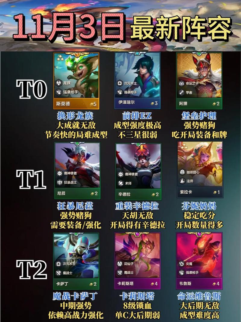 注意事项: 在游戏中要时刻关注对手的阵容和装备情况,灵活调整自己的战术和装备分配。 保持经济健康,合理控制搜卡节奏,以确保在关键时刻能够搜到关键的高费卡。综上所述,黑白魔阵容在金铲铲之战3版本中依然是一个强势且稳定的上分选取。
