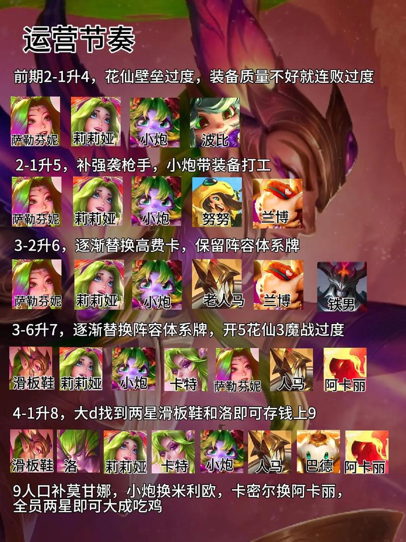 〖One〗、首先,阵容搭配是关键。推荐的棋子组合包括猪妹『2』、杰斯『5』、蔚『4』、雷娜塔『4』、发条『4』、女警『1』、希尔科『5』和烬『4』,形成1未来守护者、1微光首脑、1宿敌和4执法官羁绊,同时还有2格斗、2狙神、2学者和2精密的协同效果。